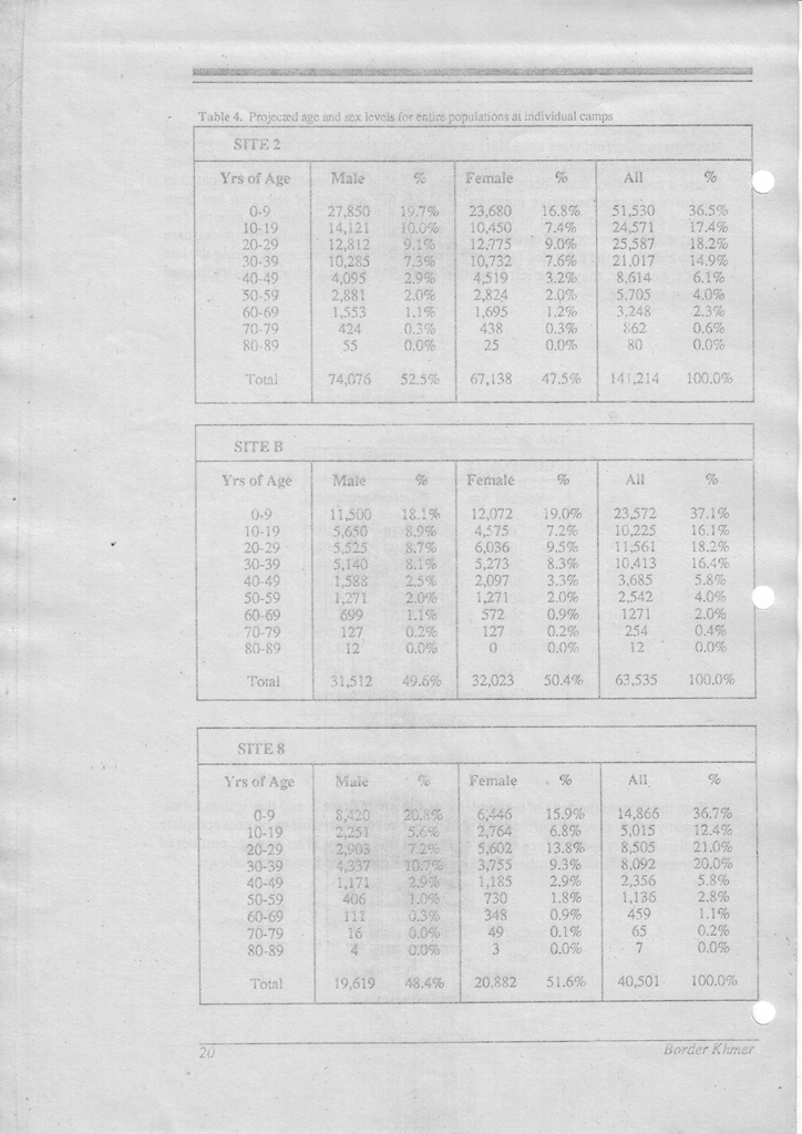 When a visitor to a border camp wants an answer to one of the' aforementioned questions;, he or she usually turn to an UNBRO official, an ICRC delegate, an expatriate volunteer, or perhaps a representative of one of the Khmer administrations. While most of these sources are as well informed as one could possibly imagine, it would be unreasonable to expect anything more than an educated guess. That's all right for the briefing of a touring dignitary, and entirely acceptable to bolster one's position in a friendly argument on an issue concerning the border Khmer, but inadequate in all respects when it comes down to the actual planning of the return of a quarter of a million people.